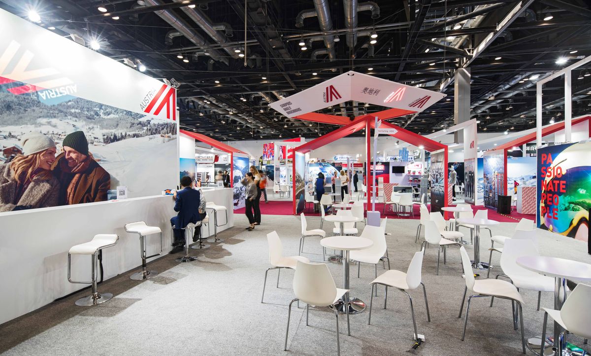 For the 2018 World Winter Sports Beijing Expo, ADVANTAGE Austria provided a platform for 26 Austrian winter sports exhibitors. The design concept by 5 Star Plus incorporated colors from the Austrian flag whilst keeping the stand both chic and eye-catching simultaneously. Structured bold shapes in the design were integrated to provide the illusion of separation, thus providing individual spaces for the various exhibitors. The result is maximum use of space and functionality through the dynamic design.