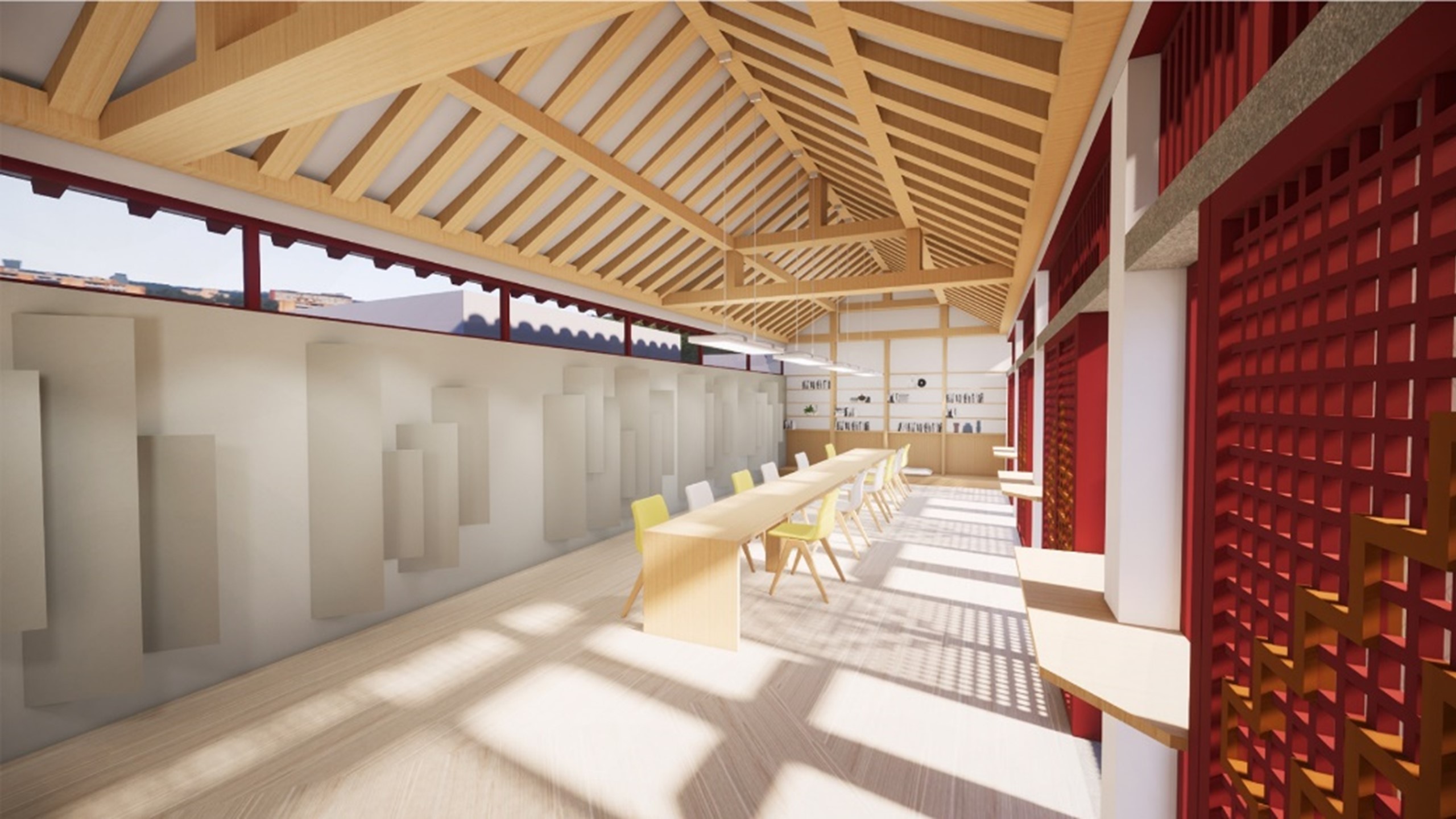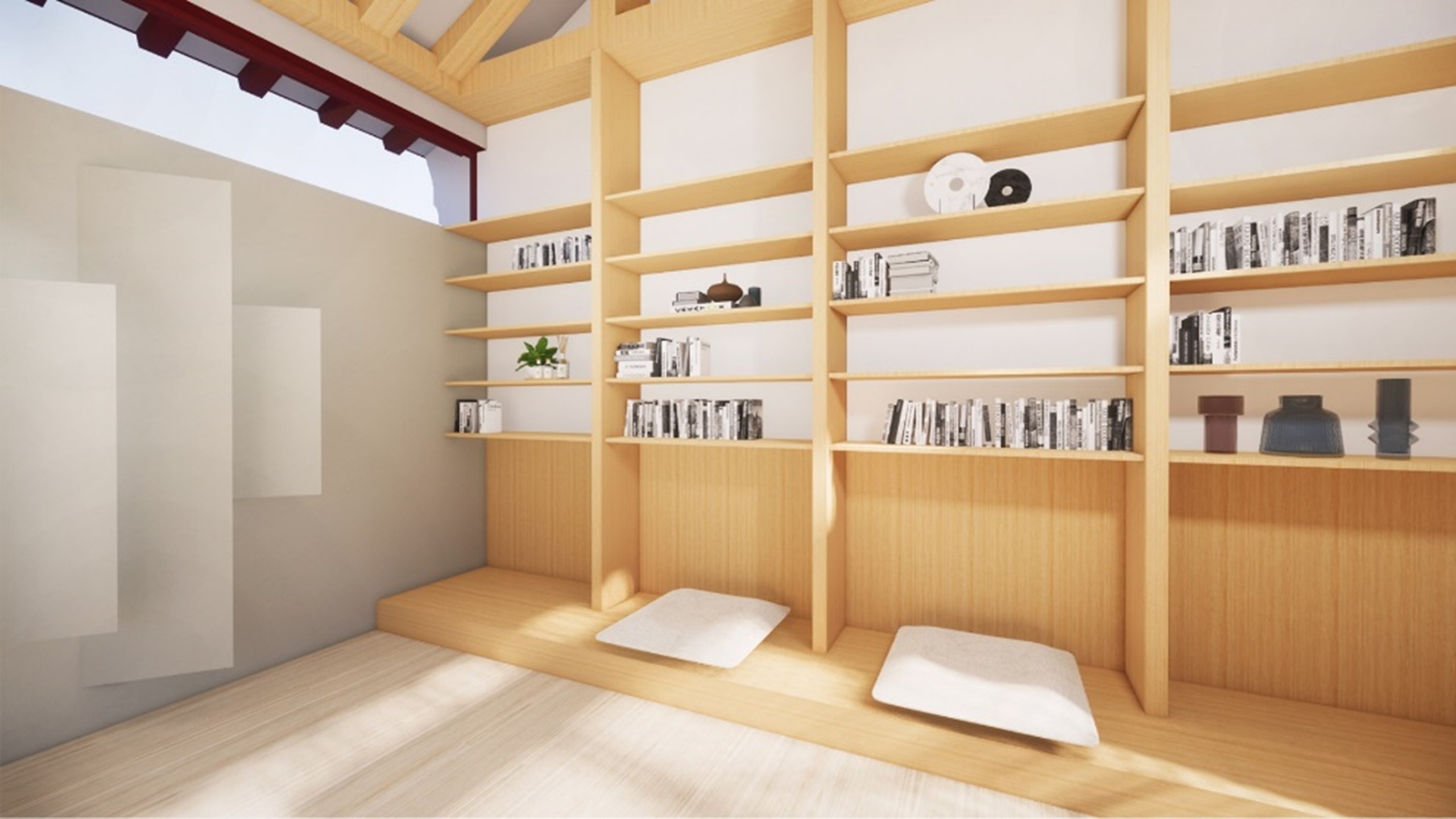 Located in an ancient temple area in Beijing’s South, Fayuansi Hutong was selected to be part of a larger renovation and urban revival project. The buildings were to be stripped back into their original state and assigned new functions to attract a younger, modern crowd. 5 Star Plus Retail Design was assigned to create a mixed use commercial interior combining a shared workspace function, a coffee shop and bookstore into one space. In order to contrast with the traditional structure, 5 Star Plus Retail Design created a very modern, sleek design concept based on the color white. Light wood is used to emphasize the old ceiling and a feature book shelf at the far end. As an eye catcher and to play with the length of the building, angular shelving with a triangular base was designed along the long wall. From one side, the shelves are almost invisible, closed and blend with the white wall. Seen from the other side, the elements open up and attract attention with their bright yellow color. This creates a certain dynamic as visitors walk through the space. Yellow is also a reference to the original name, Fayuansi, and history of the space.