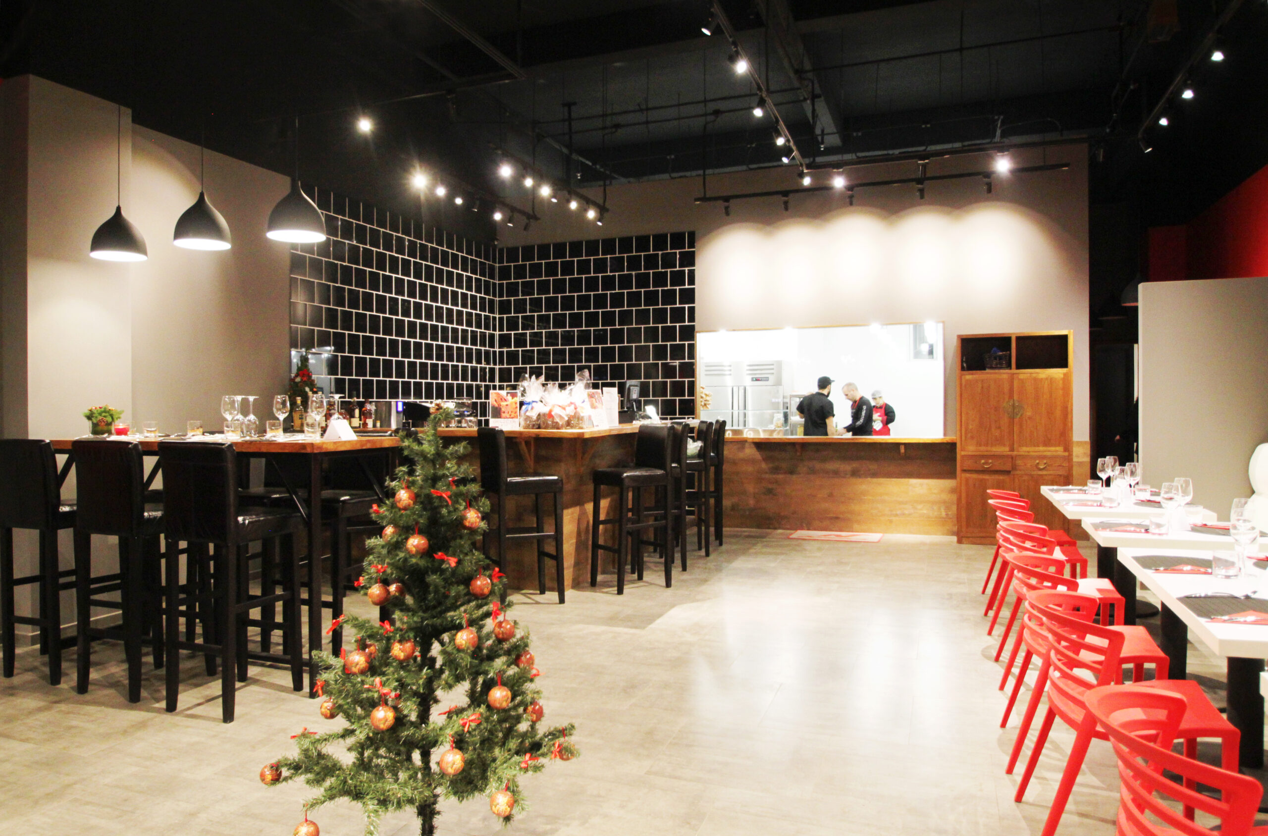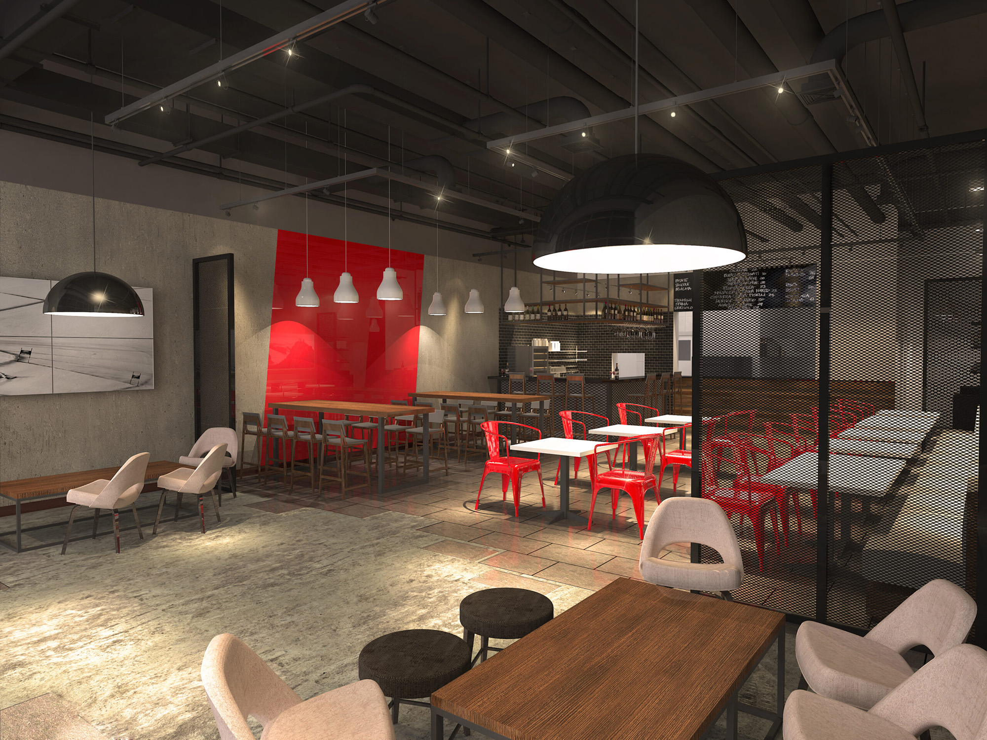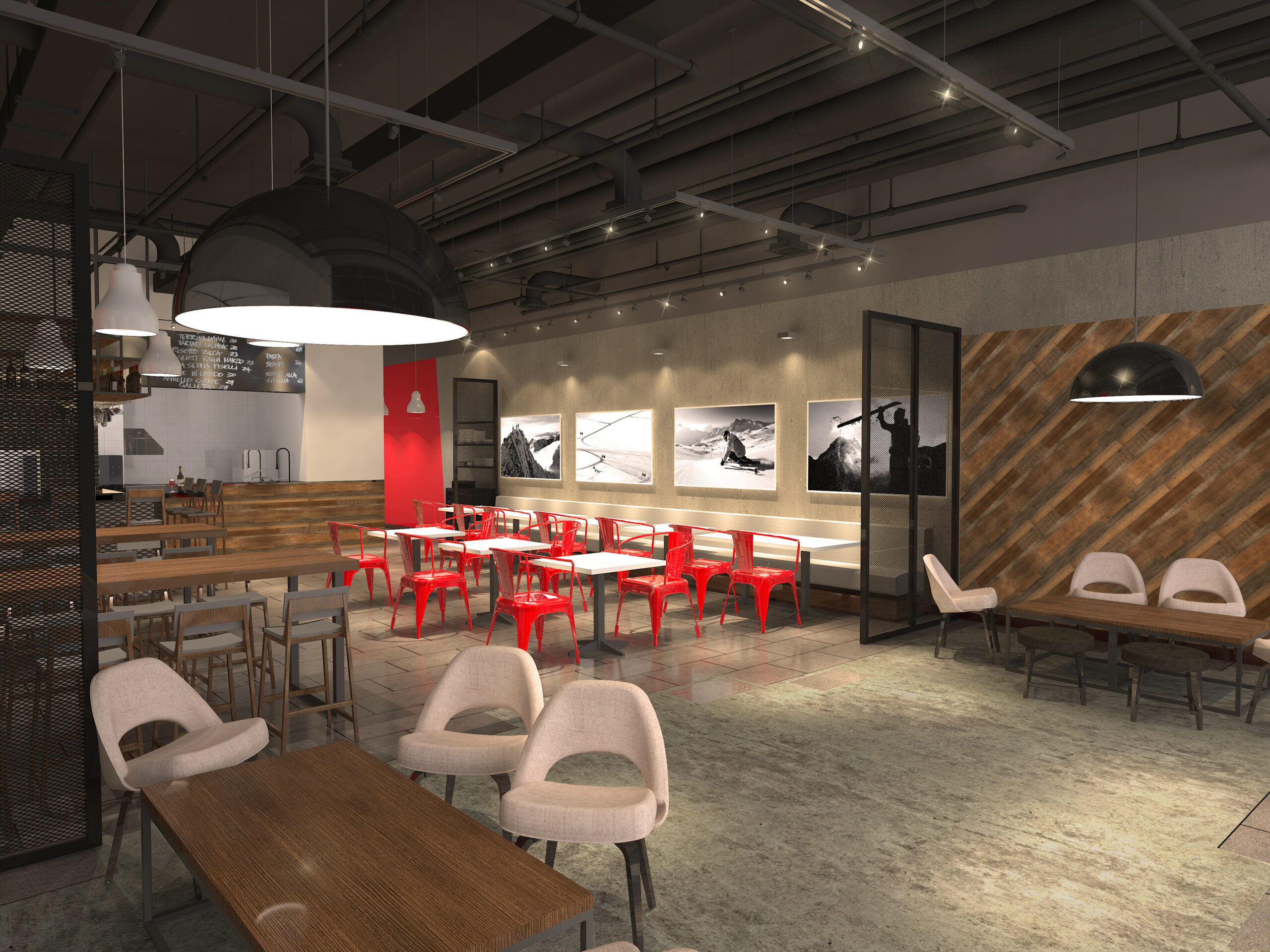 Nordica, the Italian ski equipment brand, made the decision to take its brand image to the next level by opening “Nordica Lounge”, a restaurant and lifestyle concept in the city of Chongli, Hebei province, a host for the Winter Olympics in 2022. Based on the concept of combining simplicity and high quality food two key elements of the design concept were developed, the Nordica bar and a large window into the kitchen that allows customers to observe the food preparation process. Inspired by the brand’s visual identity the color palette of the restaurant design incorporates only reds, greys and blacks, while featuring an abundance of natural textures such as wood and sandstone to create a warm cozy atmosphere. Further brand characteristics that were incorporated into the restaurant design were passion, quality, service and comfort.