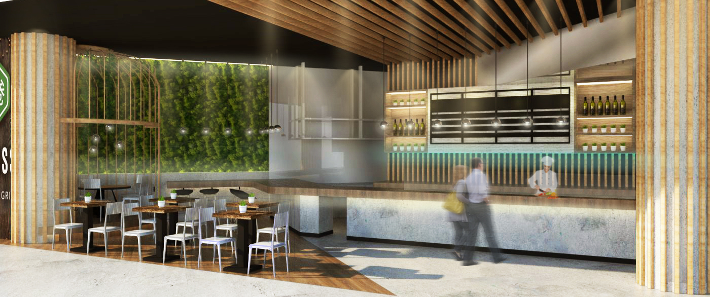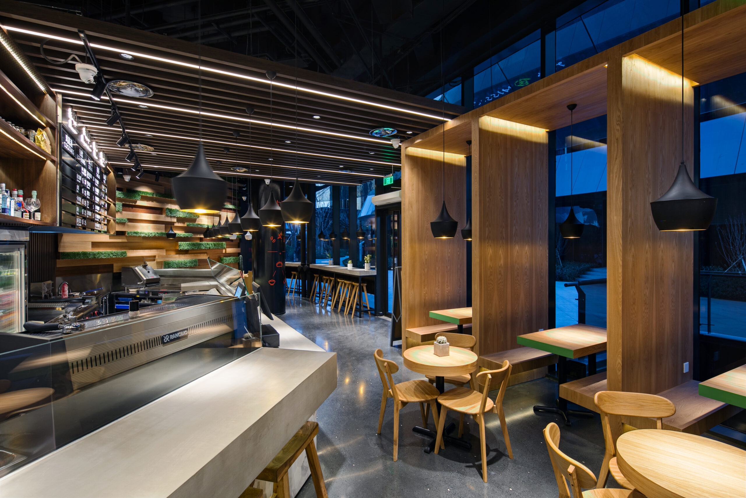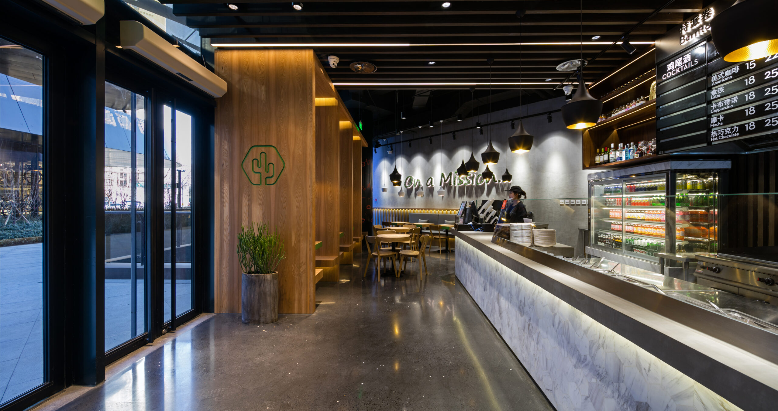 5 Star Plus Retail Design designed The Mission Fresh Grill’s first restaurant in China World Mall, Beijing. The American-style Mexican grill offers healthy, fresh ingredients, which inspired the restaurant design’s color set. Natural wood and high-quality materials were selected in order to emphasize the brand’s health-oriented values. The open stainless steel kitchen promotes cleanliness by allowing customers to view the preparation process. We integrated custom-designed metal elements, a wall sculpture and intelligent lighting to communicate the brand’s origin, positioning and depth throughout the concept design. The result is an artistic restaurant design that conveys a cool vibe.