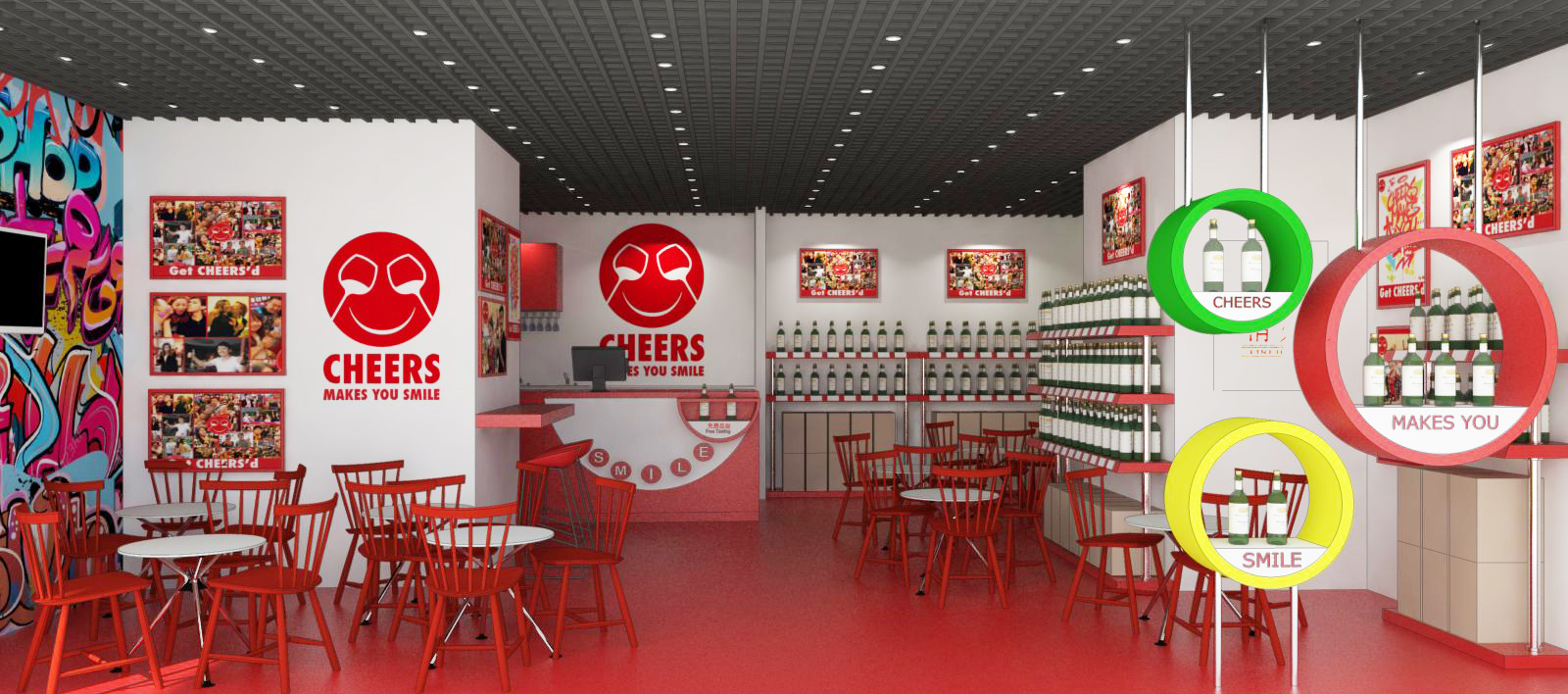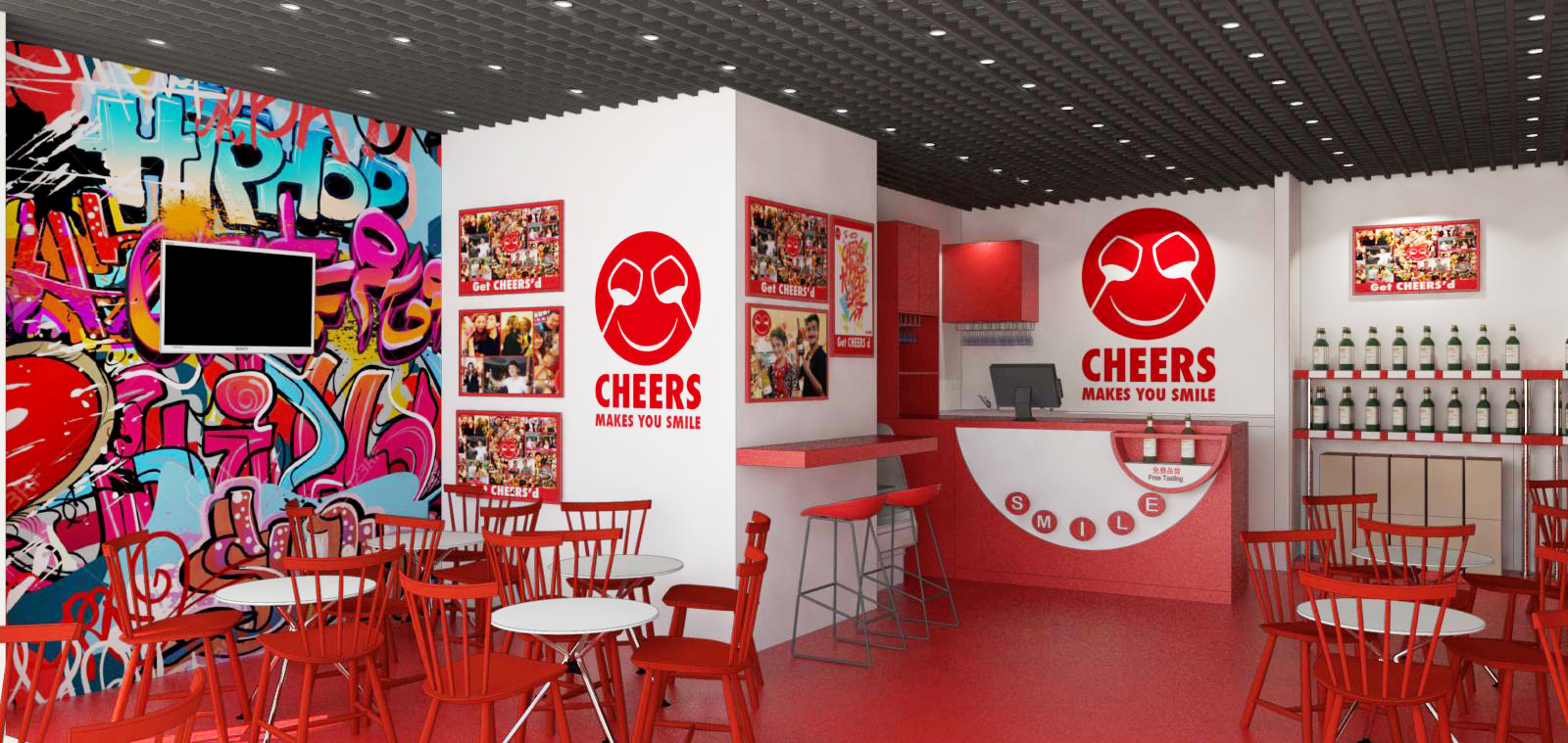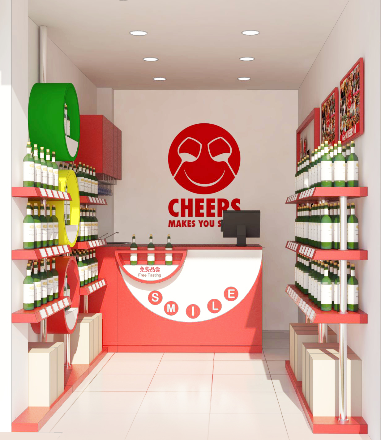 CHEERS is a Swiss company that sells imported wines in branded, fully-owned and franchise stores all over China. The brand’s philosophy is to be fresh, dynamic and different from all existing wine store concepts. CHEERS had an existing store identity design concept that needed to be further improved and is now implemented in all new stores in China for a standardized, strong brand impact.