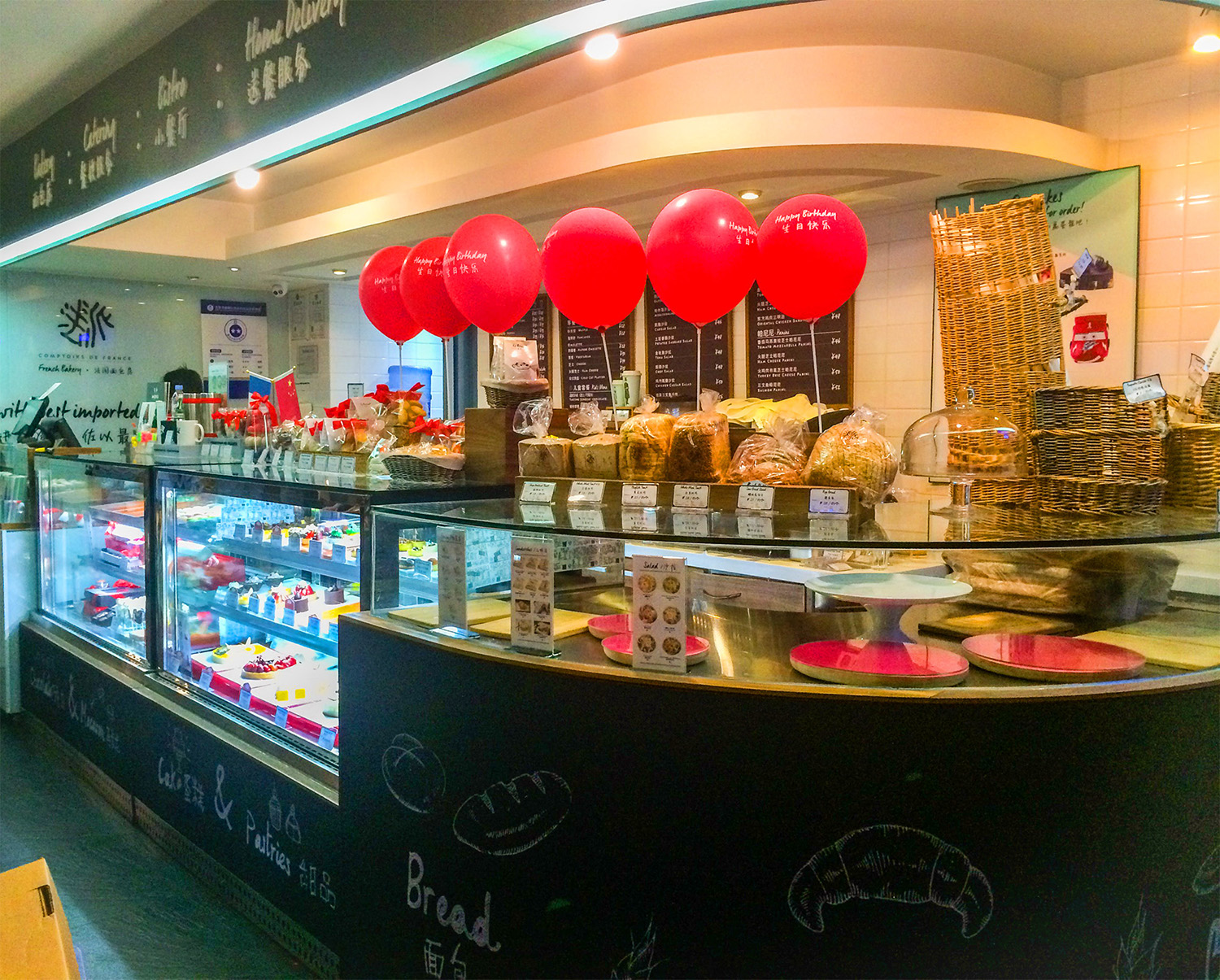 Comptoirs de France, a French bakery chain in Beijing, requested an update of its visual display and merchandising concept for its stores. We created a design concept where specific product groups can be highlighted, while all product groups complement each other under one visually cohesive, branded concept. This design concept is based on strong colors that can be modified according to the season. Colored elements are placed strategically in the display to highlight certain products and also re-appear throughout Comptoirs de France’s packaging and promotional material.