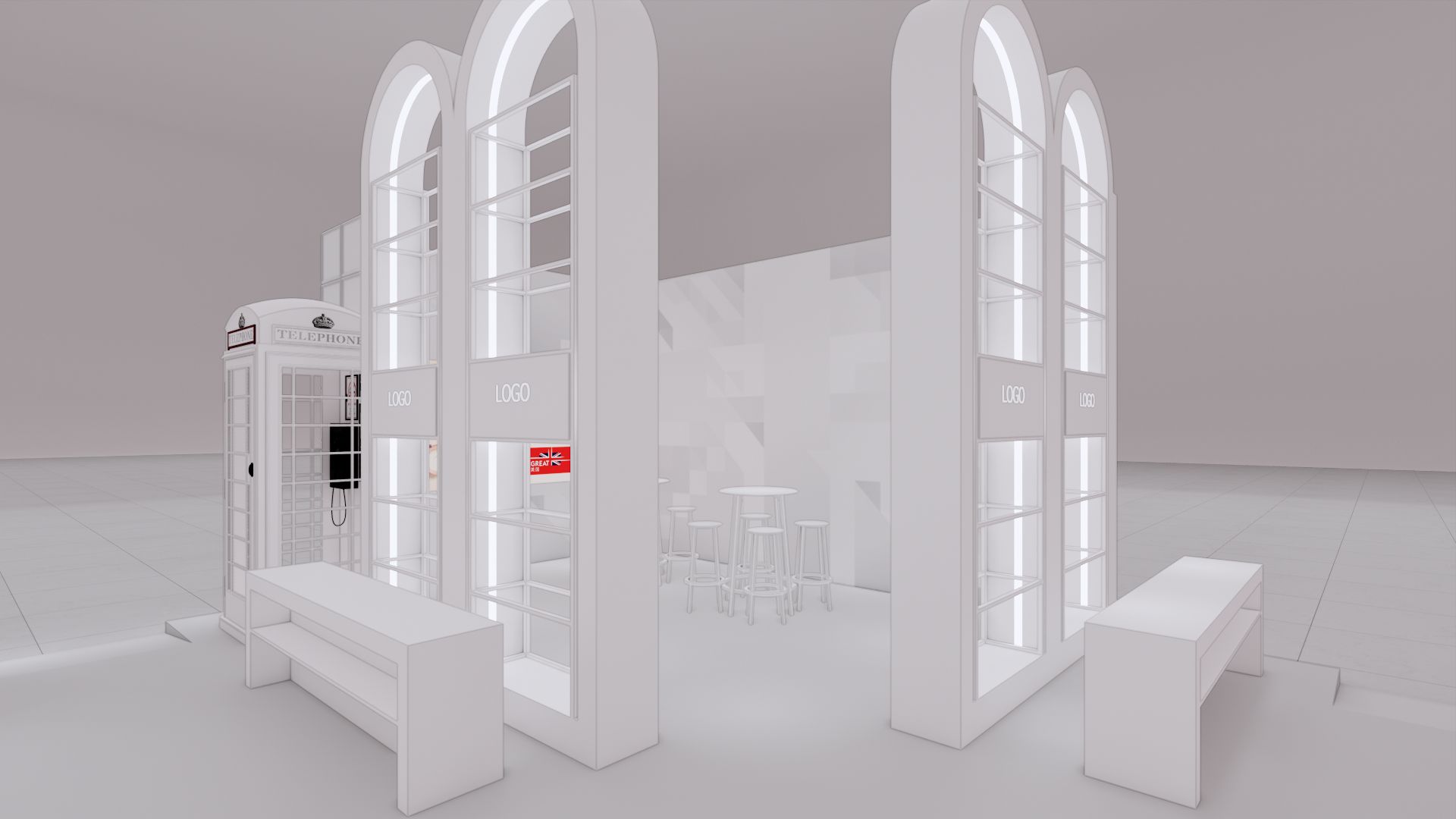 这个英国馆的展览设计概念是为一个国家展览展位提出的创意方案。目标是打造一个高端、极具影响力的环境,突出英国在多个消费领域的时尚生活、创新和工艺。作为国家馆设计的杰出范例,该概念将传统建筑与现代展览展位美学相融合,将传统与创新相结合,提升参观者的体验。